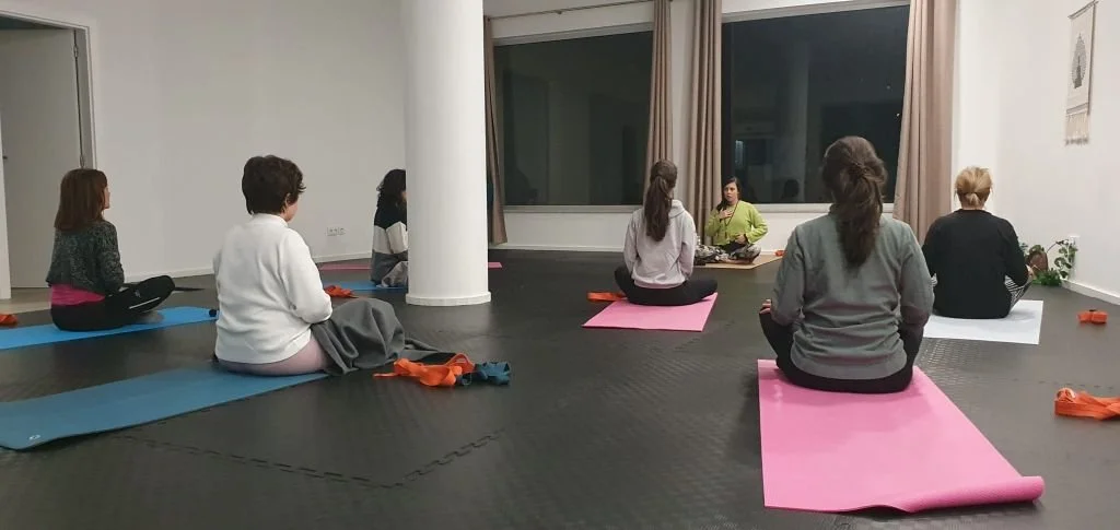 Aulas regulares de yoga clássico (hatha yoga) em grupo, onde são praticados asanas (posturas), técnicas de concentração e meditação e exercícios respiratórios e de relaxamento.